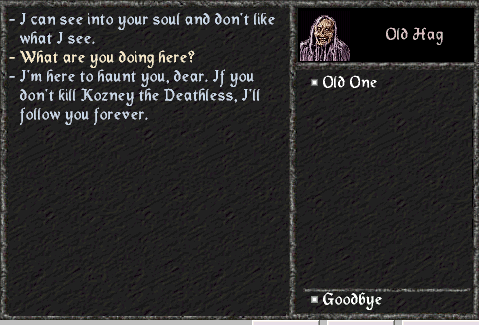 From now on you have only two choices: Fight Hard or Fight Lite. Hey, you, don't rush! Sign my questbook so I'll remember your name and, if you fail (like many brave ones before you), will personally and professionally haunt your grave. I have a log, where I put names of all those who decided to kill the Deathless, let me brush some moss from it. Yea, here it is - you can see the history of bravery. |